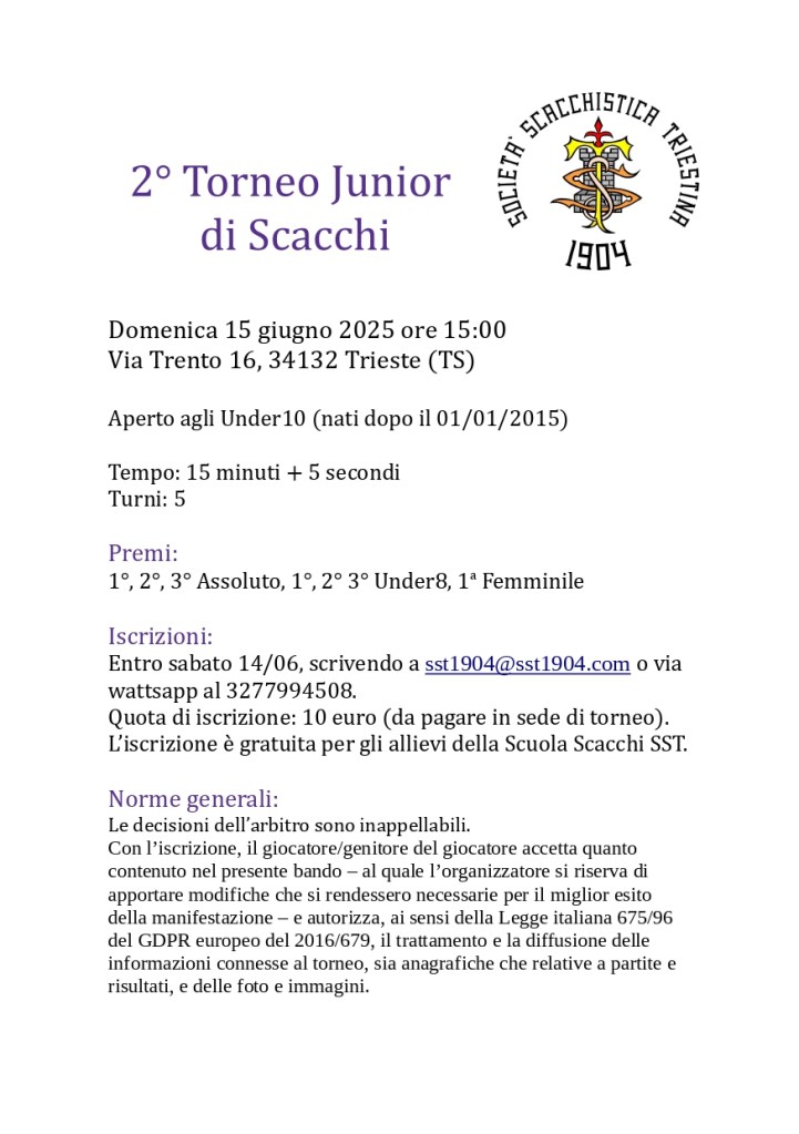 Evento promozionale dedicato a tutti gli Under10, un momento dedicato agli scacchi tra la fine dell’anno scolastico e l’inizio delle vacanze!